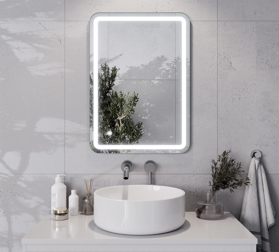 LUSTRO ZAOKRĄGLONE ROGI SZLIF PIASKOWANE LED WŁĄCZNIK DOTYKOWY ORLANDO
