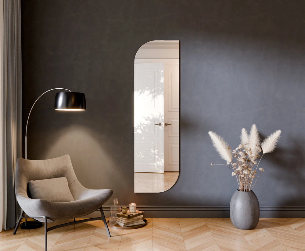 Lustro Ścięte Ścienne Szlif Wypiaskowany wzór czarny JASMINE