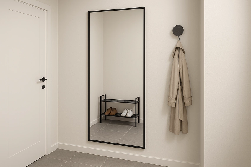 Lustro na poddasze Trapez Wypiaskowany Wzór w lustrze LED konfigurator POD WYMIAR