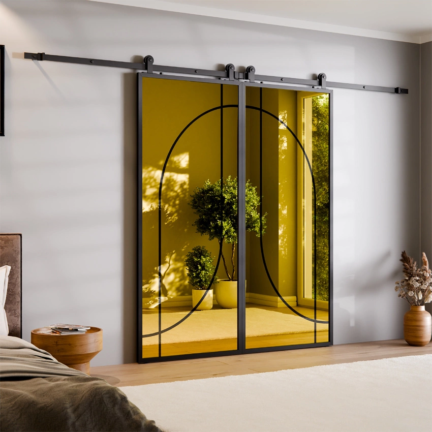 DRZWI PRZESUWNE BALDUR PODWÓJNE ALUMINIUM LOFT LUSTRO ZŁOTE ŁUK 4