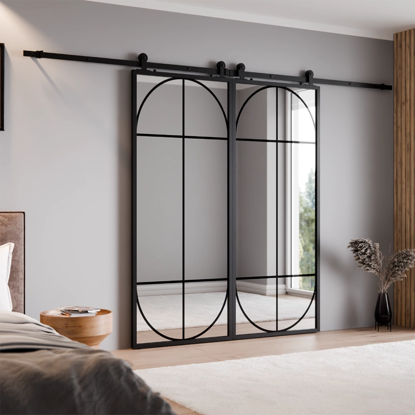 DRZWI PRZESUWNE BALDUR PODWÓJNE ALUMINIUM LOFT LUSTRO SZPROS