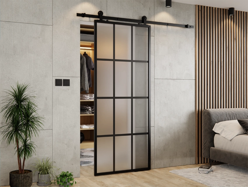 DRZWI PRZESUWNE 85X210 SYSTEM ALUMINIUM CZARNE FLOAT (8 PÓL) Sito THOR