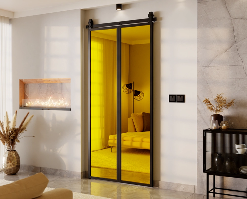 Drzwi Aluminiowe Przesuwne z Ukrytym Systemem Przesuwnym LUSTRO (4 POLA) MODI