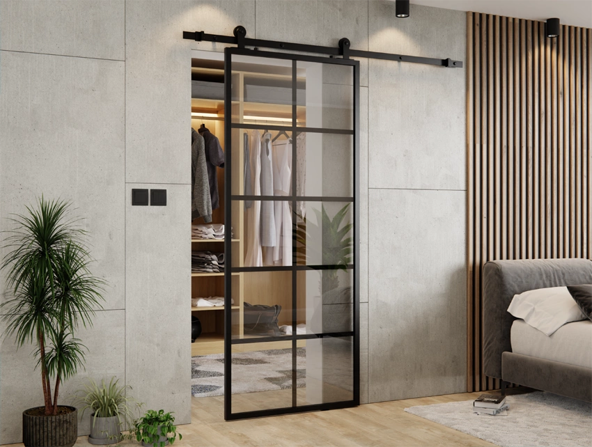 DRZWI PRZESUWNE 100X210 SYSTEM ALUMINIUM CZARNE FLOAT (12 PÓL) Sito