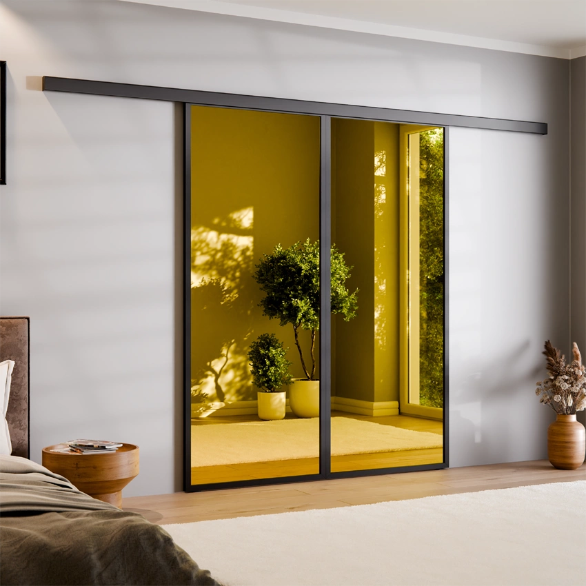 DRZWI PRZESUWNE PODWÓJNE ALUMINIUM CZARNE LUSTRO ZŁOTE THOR