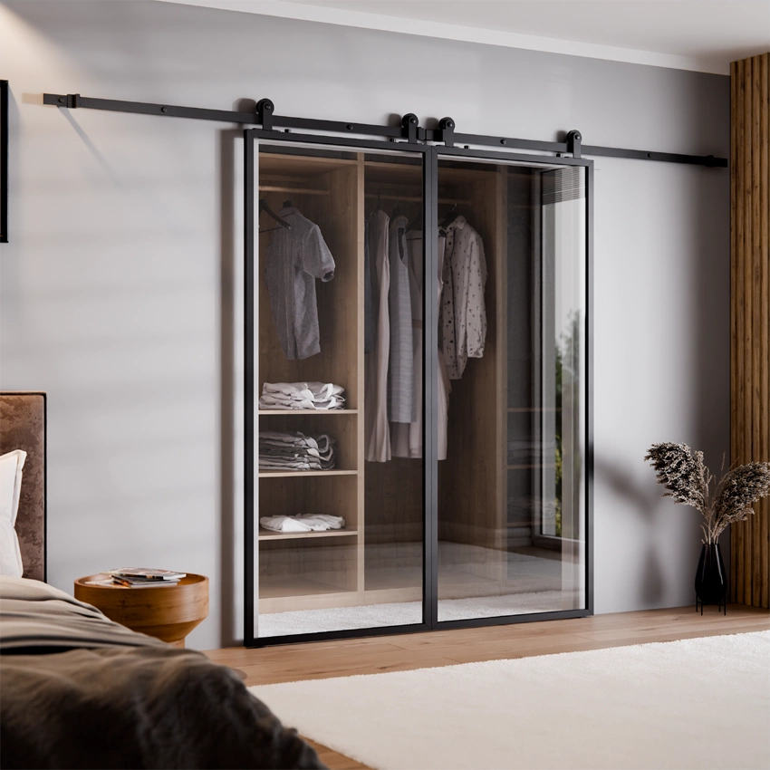 DRZWI PRZESUWNE BALDUR PODWÓJNE ALUMINIUM LOFT LUSTRO SZPROS