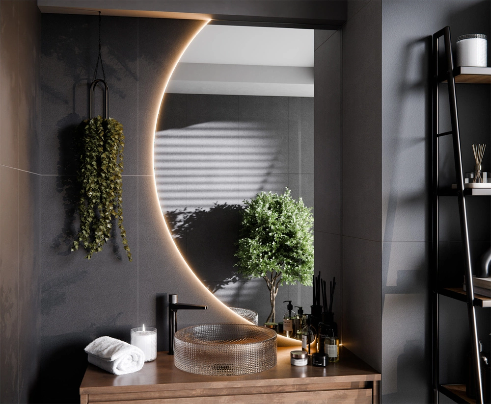 Lustro Łazienkowe Półokrągłe Ścięte Led - ARIA BEZ PÓŁKI