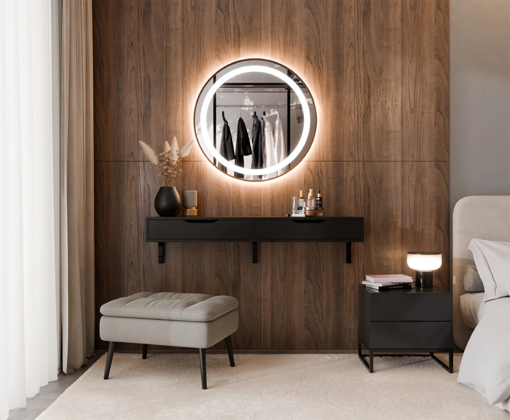 LUSTRO OKRĄGŁE ŚCIENNE W CZARNEJ ALUMINIOWEJ RAMIE LED TAYLOR