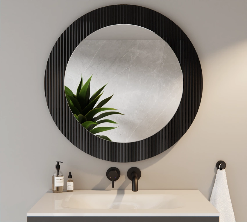 Lustro Okrągłe Srebrne 60cm Szkło Milenium Czarne 80cm SELENA