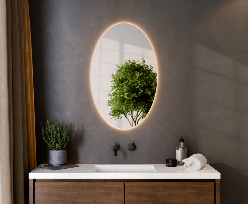 Lustro Owalne LED Tricolor z Matą Grzewczą 50x80cm OLGA