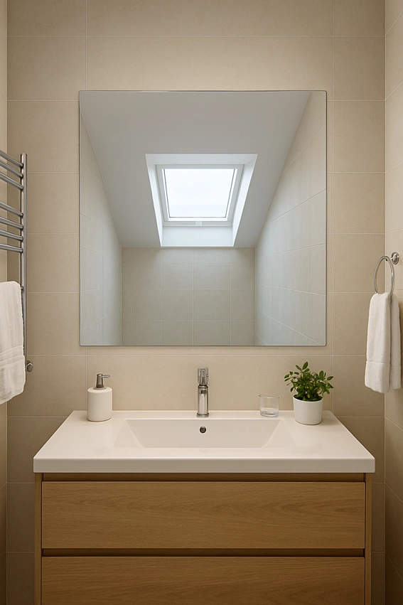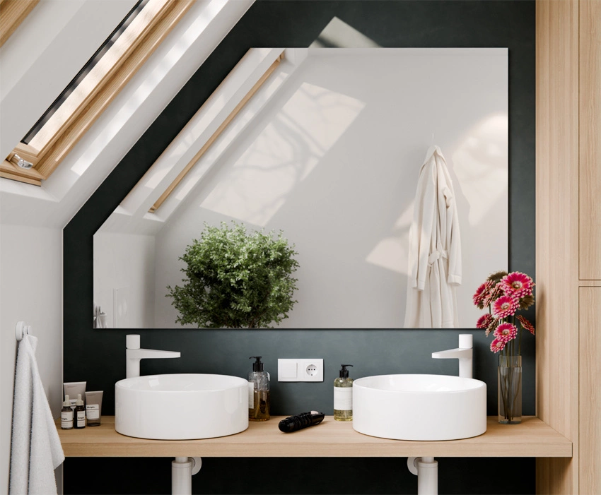 Lustro na poddasze Trapez Wypiaskowany Wzór w lustrze LED konfigurator POD WYMIAR