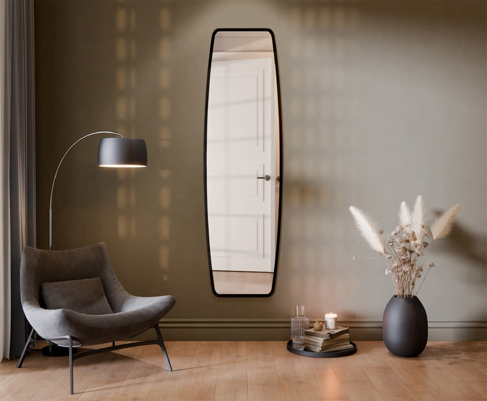 LUSTRO STOJĄCE ZAOKRĄGLONE ROGI SZLIF WYPIASKOWANY WZÓR - CZARNY 60X170 AGA