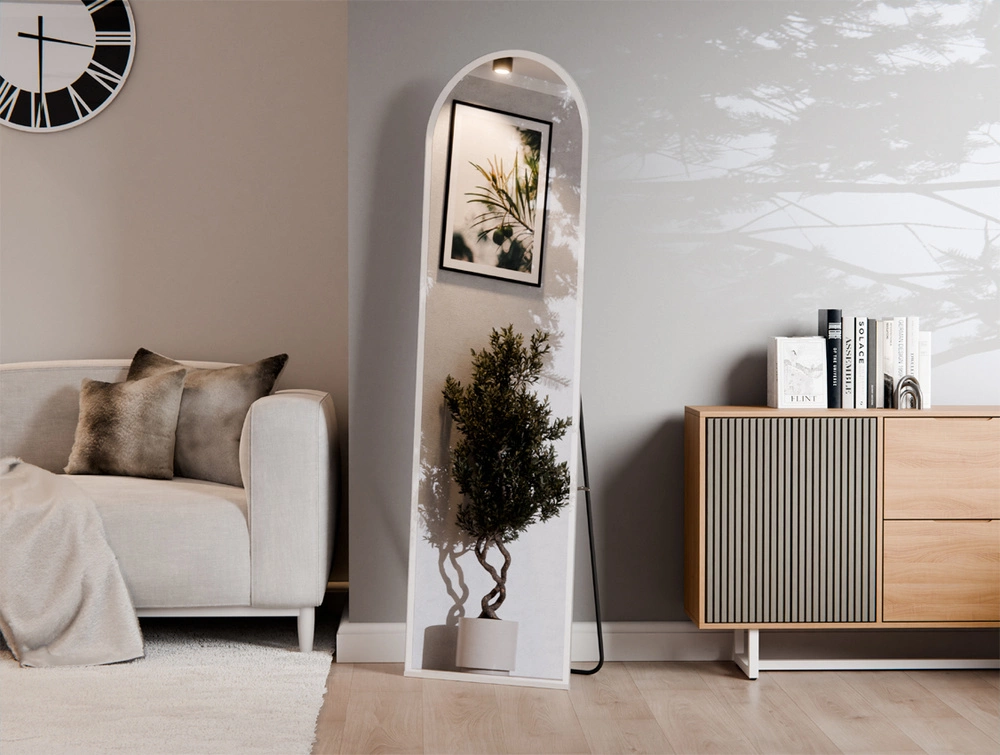 LUSTRO PÓŁOWALNE STOJĄCE SZLIF WZÓR PIASKOWANY - BIAŁY 60X170 CM TOSIA