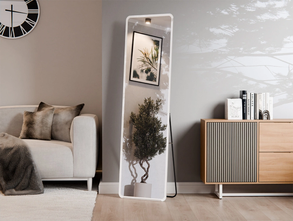 LUSTRO STOJĄCE ZAOKRĄGLONE ROGI SZLIF WYPIASKOWANY WZÓR - BIAŁY 60X170 AGA