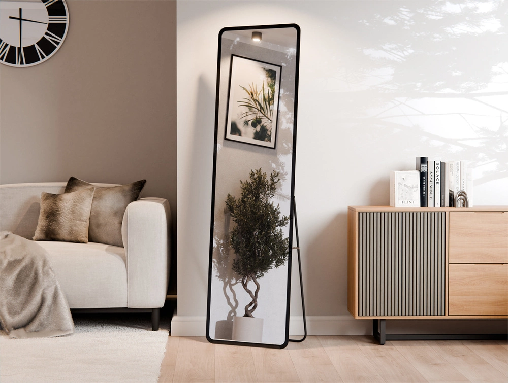 LUSTRO STOJĄCE ZAOKRĄGLONE ROGI SZLIF WYPIASKOWANY WZÓR - CZARNY 60X170 AGA