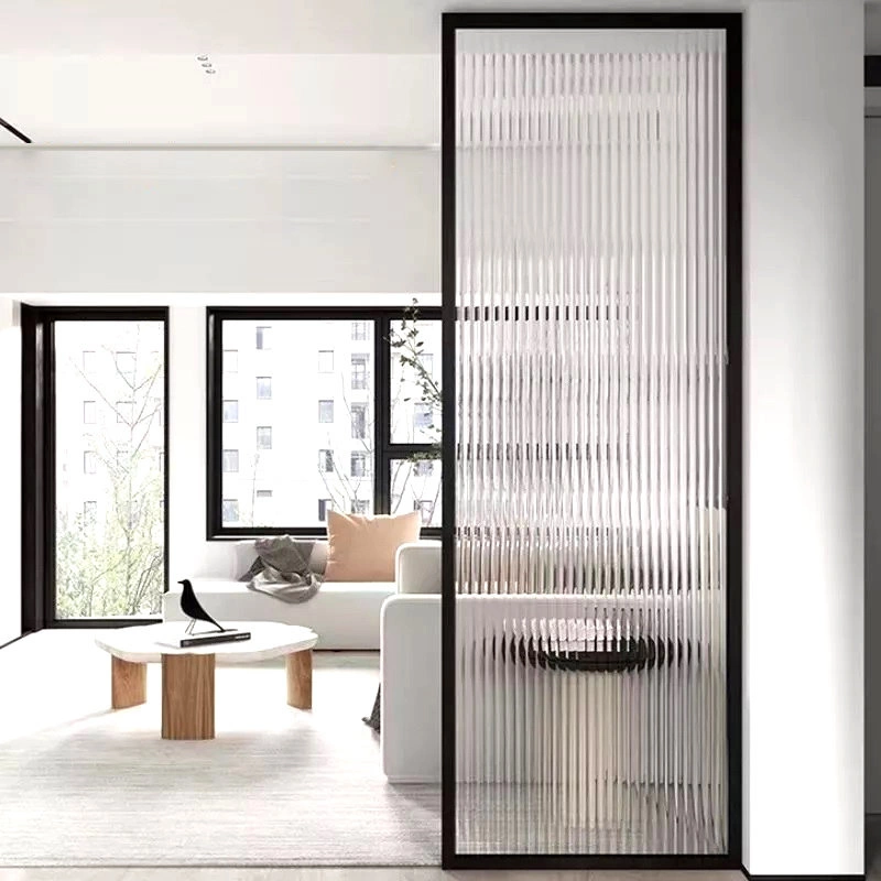 Ścianka Działowa Szklana Profil Alu. Czarny Flutez 75x218