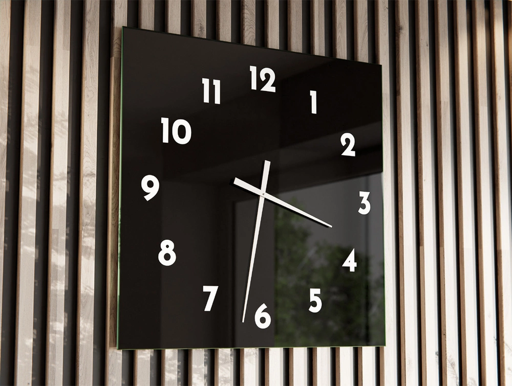Zegar Kwadrat Czarny D4 Lacobel Białe Wskazówki