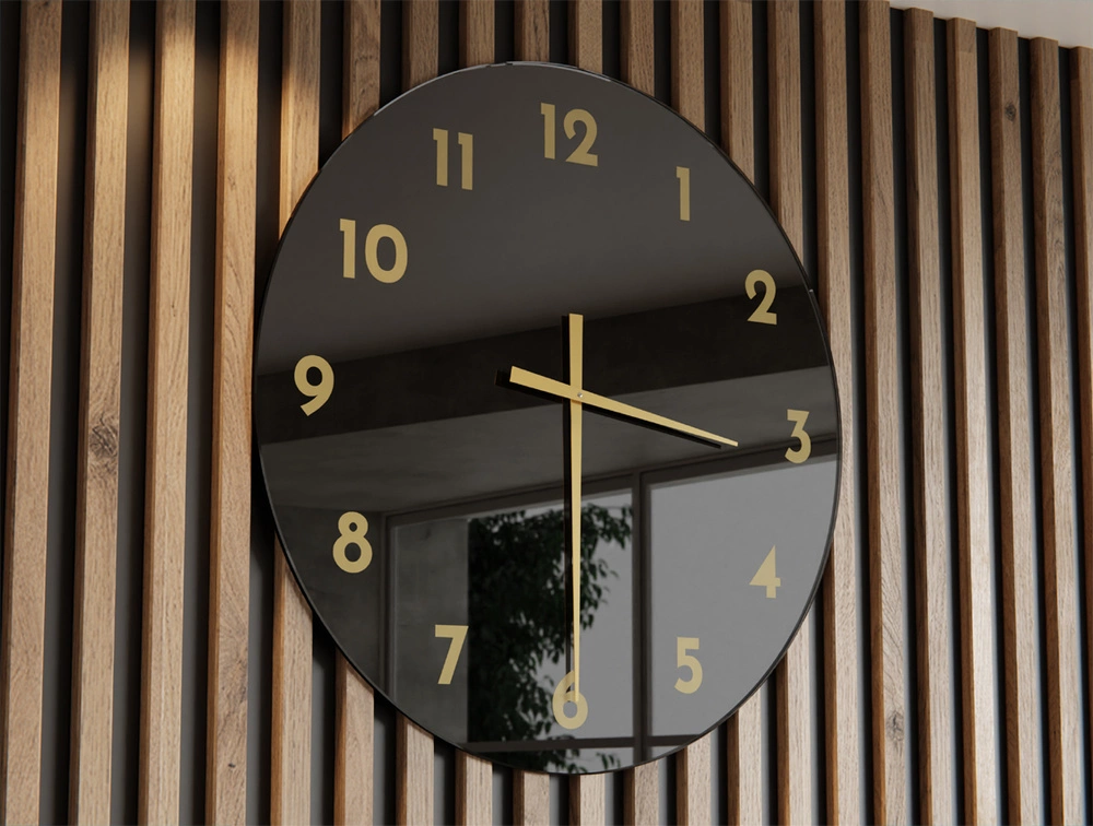 Zegar Rzymski Czarny B1 Lacobel Złote Wskazówki