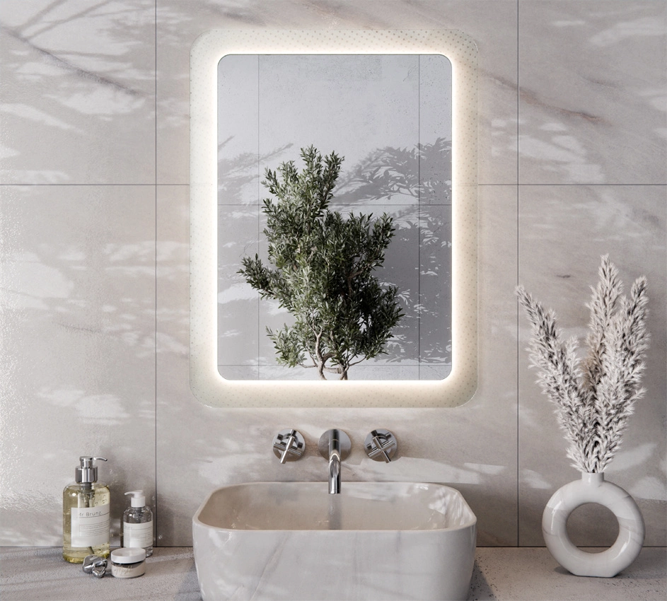Lustro 60x80cm Szkło Milenium Przejrzyste LED Zaokrąglone Rogi TONY