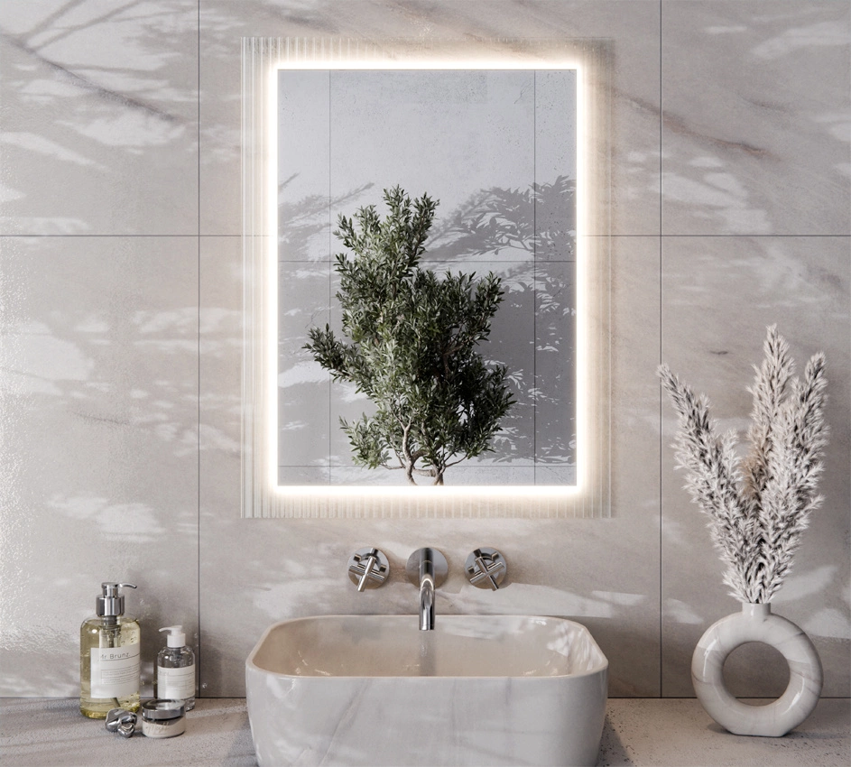 Lustro Prostokątne 60x80 cm Szkło Ornamentowe Przejrzyste Flutez LED HARRY