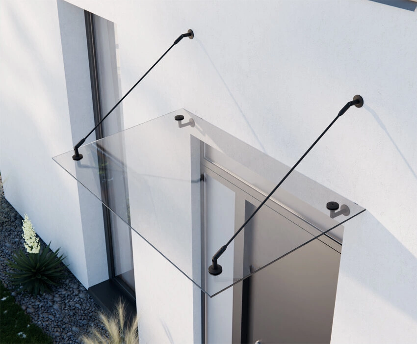 Daszek Szklany Zadaszenie Nad Drzwi 140x90 CZARNE PODPORY