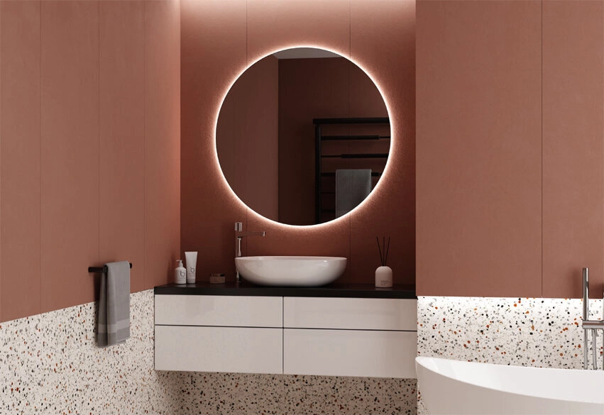 Lustro 60 x 80 cm Szkło Master Care Przejrzyste LED Zaokrąglone rogi LOGAN